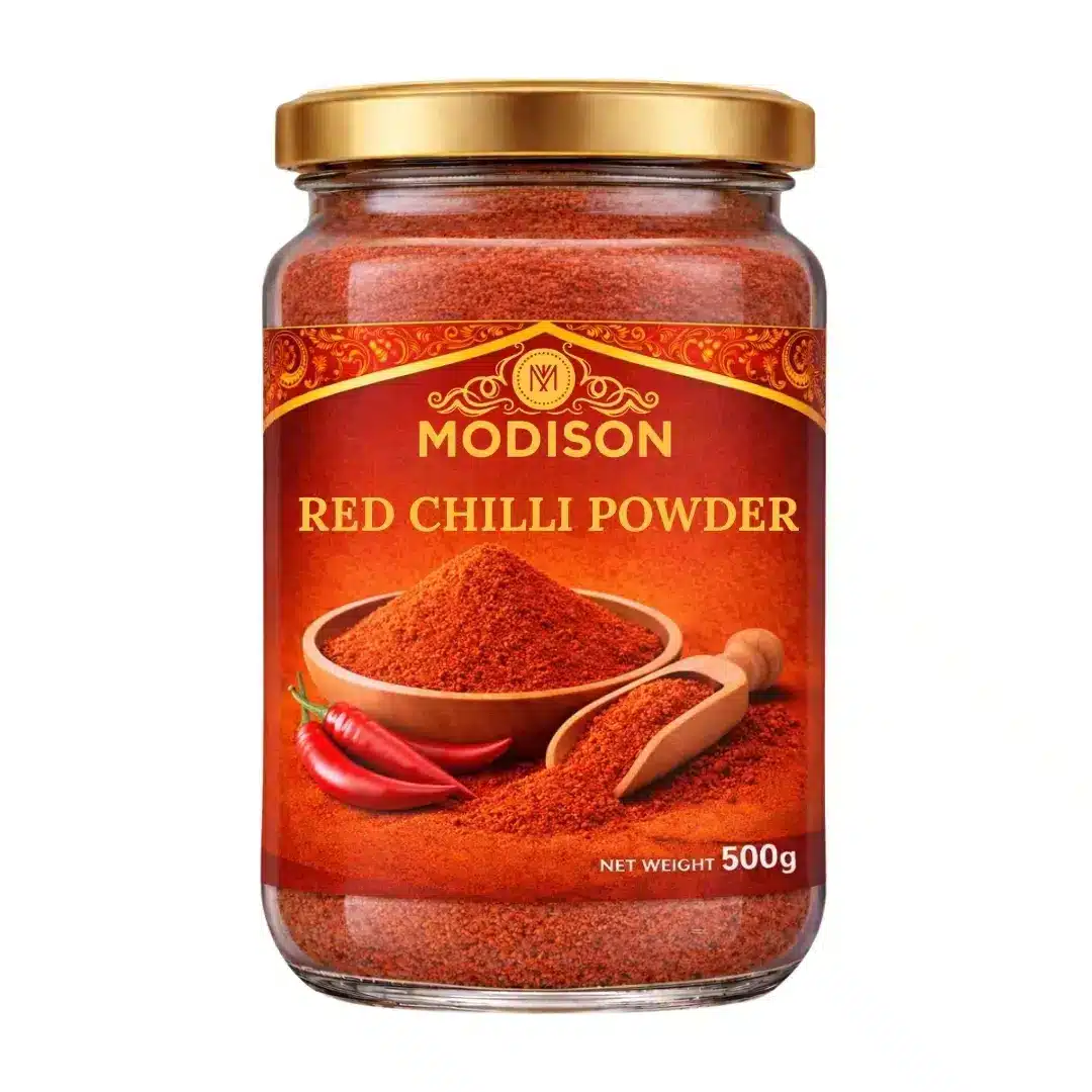Modison Red Chilli Powder is a premium quality authentic masala made from carefully selected dried red chillies, finely ground to deliver vibrant colour and bold flavour in every dish. Known for its rich red hue and balanced heat, this chilli powder enhances curries, gravies, marinades, and snacks effortlessly. Moreover, it is hygienically processed and securely packed to preserve freshness and consistency. Whether you are preparing traditional Indian dishes or adding spice to everyday meals, Modison Red Chilli Powder brings authentic heat and flavour to kitchens across the UK.