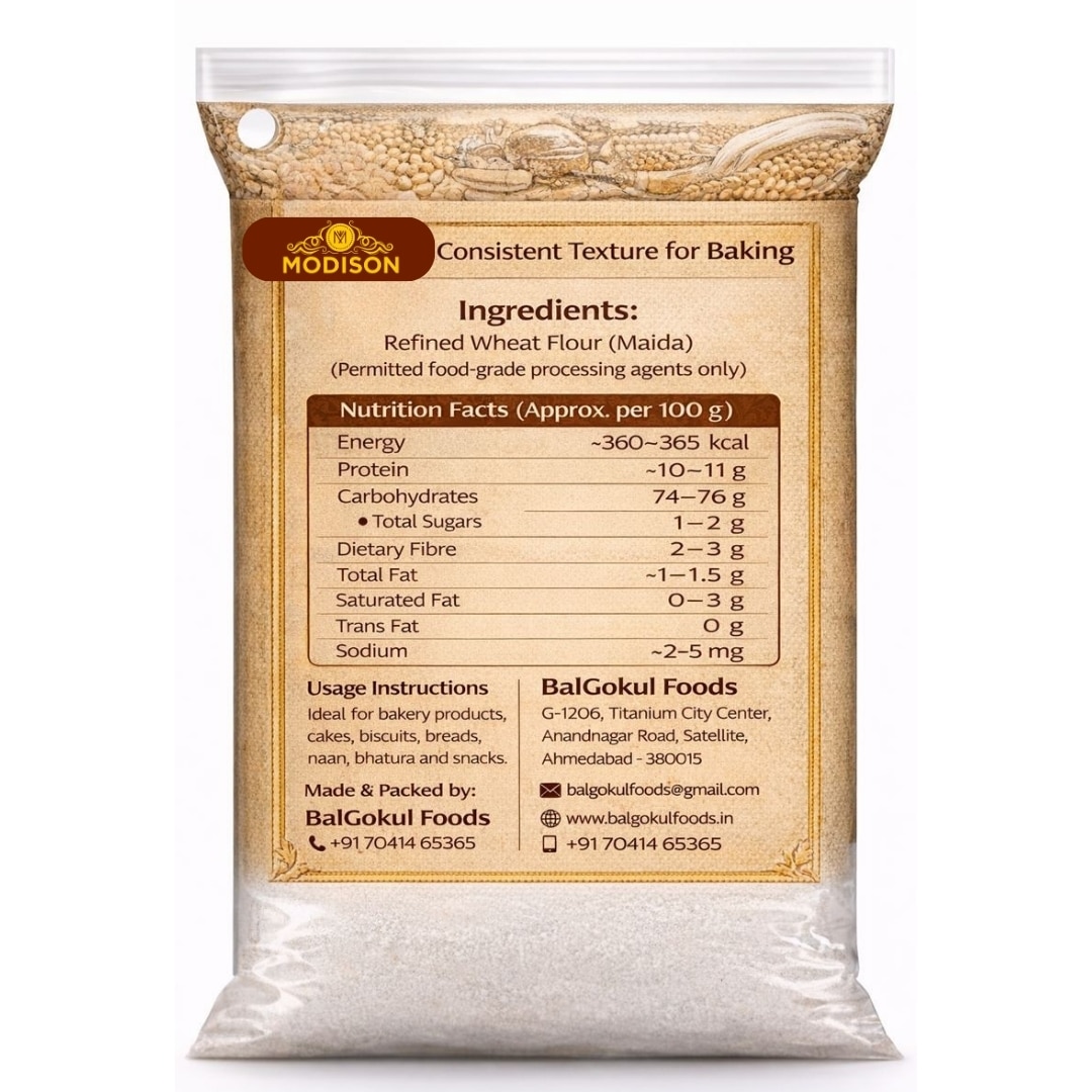 Modison Superior Maida is a premium quality authentic maida made from carefully selected wheat and finely milled to deliver smooth texture and consistent results in every recipe. Known for its soft and refined consistency, this superior maida is ideal for baking, puris, naans, pastries, and various Indian snacks. Moreover, it is processed under hygienic conditions to maintain freshness and purity. Whether you are preparing fluffy bhaturas or delicate baked goods, Modison Superior Maida ensures perfect texture and reliable performance for households across the UK.