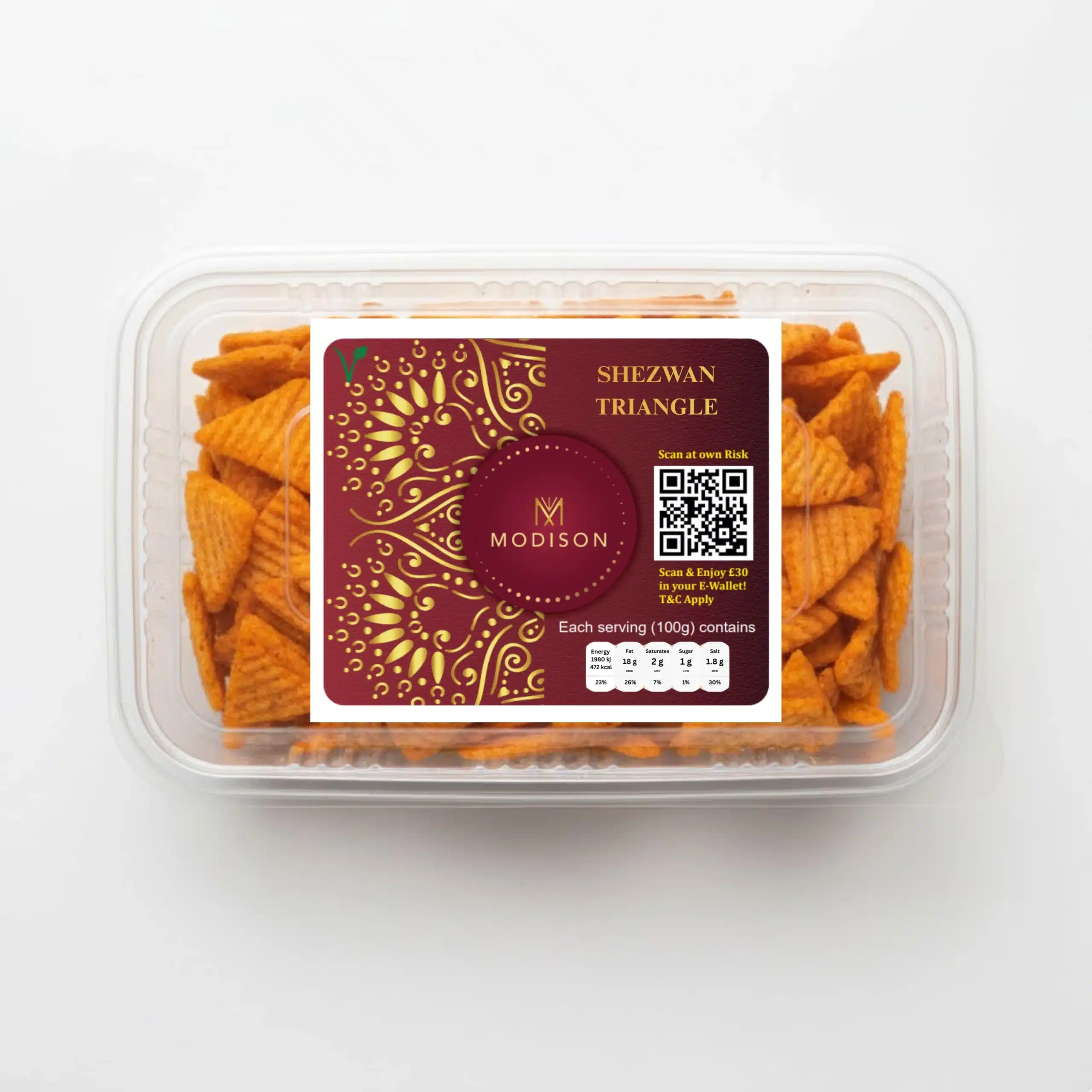 MODISON SHEZWAN TRIANGLES | Authentic Indian Snack | Vegetarian | Exported from India | UK Approved Premium quality POTATO SALI from SCHEZWAN TRIANGLES – India’s trusted exporter.100% Vegetarian, made with traditional Indian ingredients.Sealed packaging to preserve freshness during export.Imported & distributed in the UK by PRS Imports Ltd, Leicester.Long shelf life | Store in a cool, dry place | Allergen info on pack.